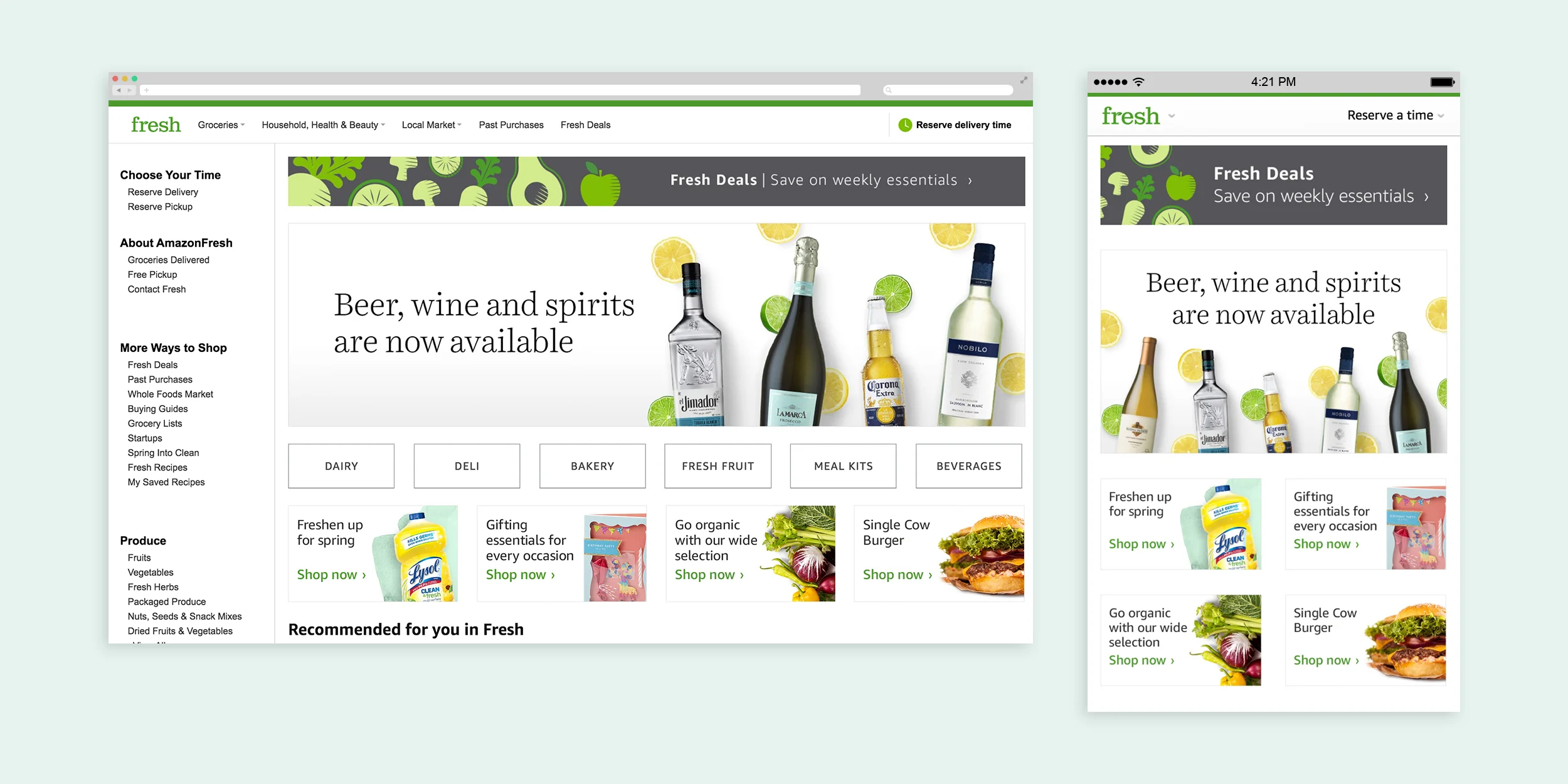 Amazon Fresh storefront graphics: desktop and mobile