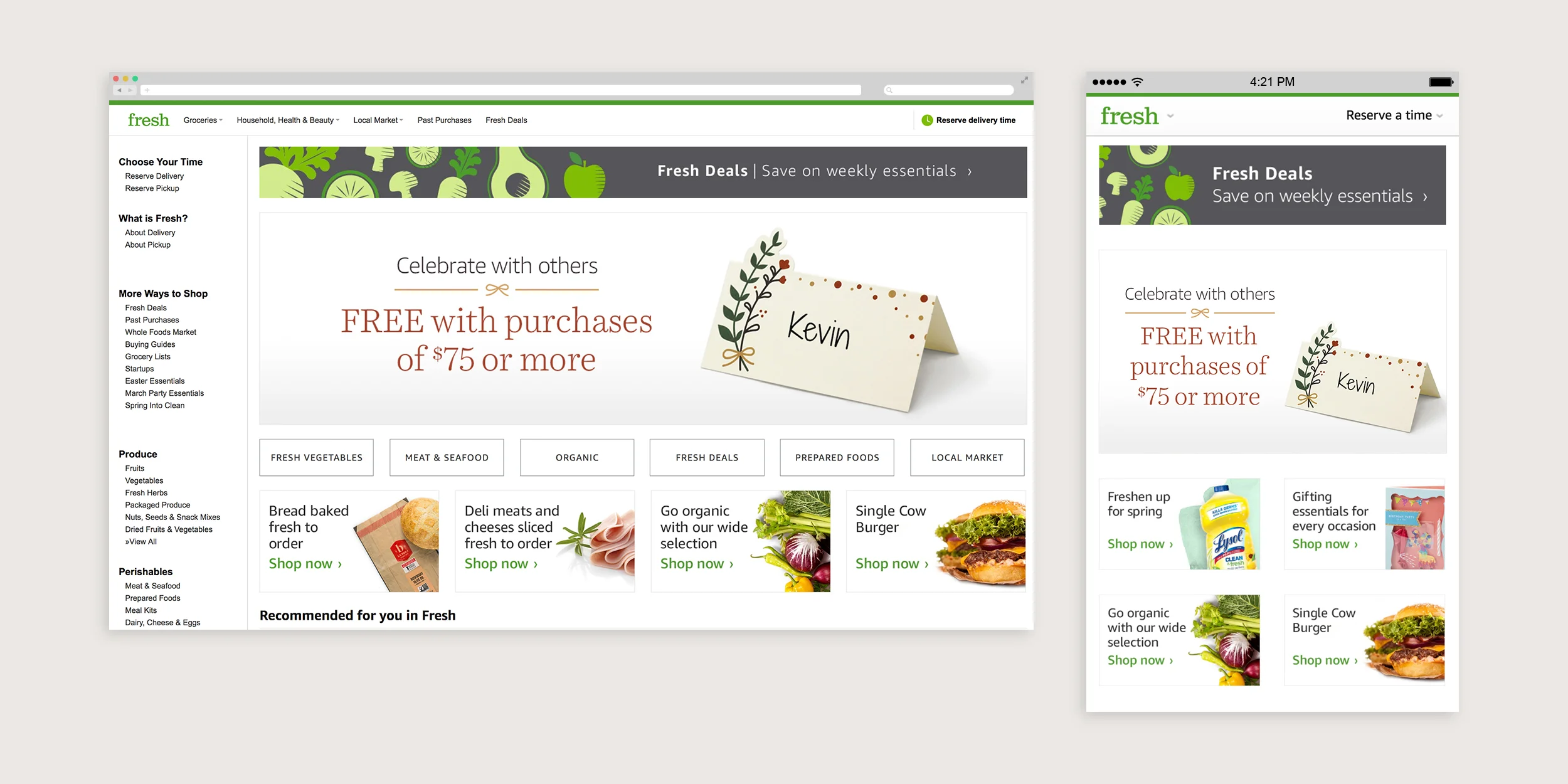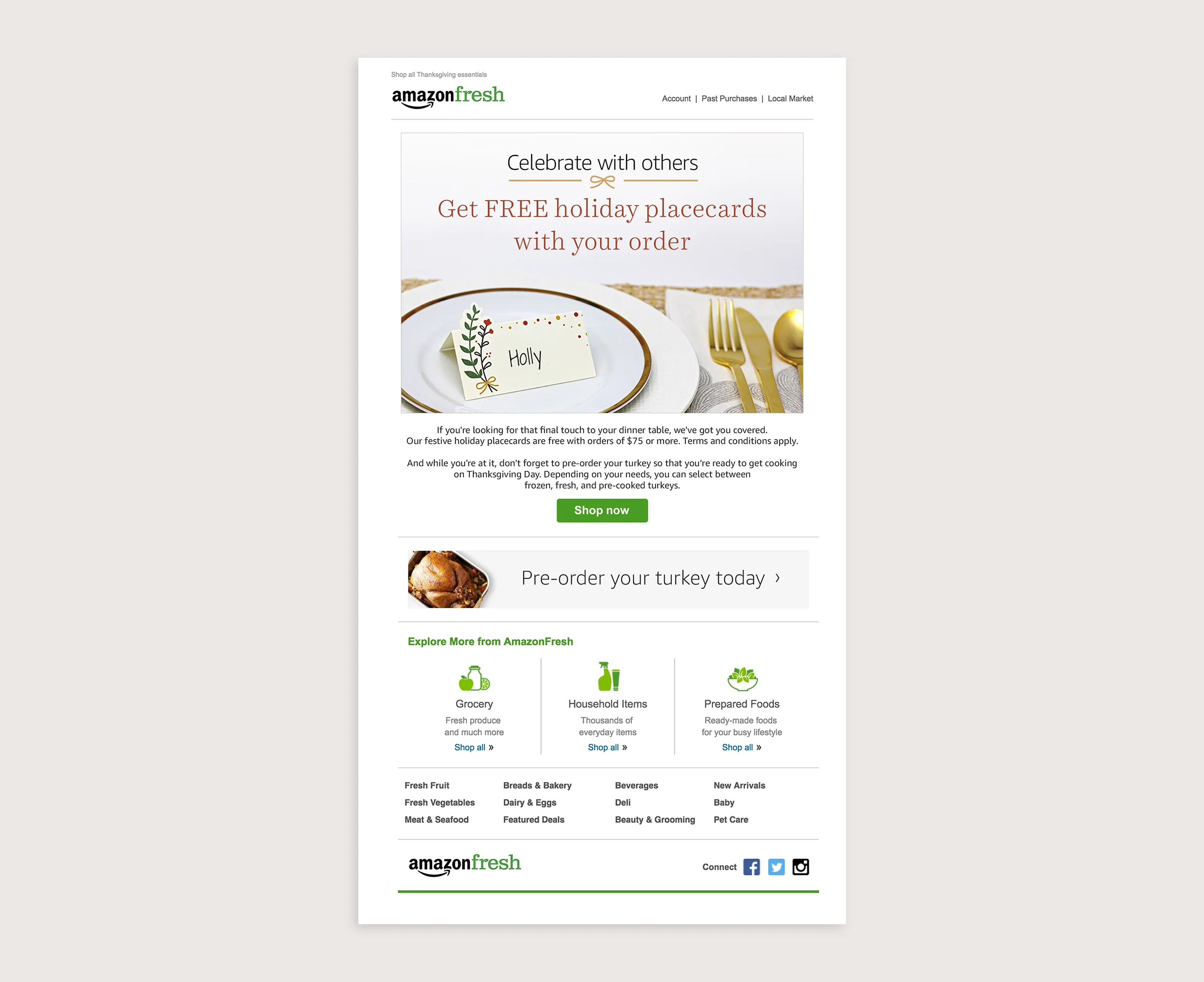 Holiday place cards designed for AmazonFresh, for Thanksgiving and Winter holiday 2017.
